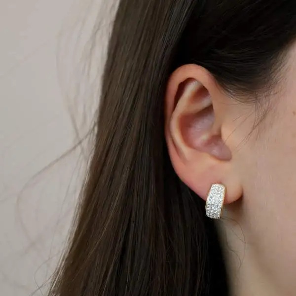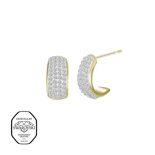 Изработени от медицинска стомана 316L и украсени с кристали Swarovski®, тези позлатени полухалки са богато обсипани с блясък.