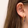 Правоъгълните обеци са с цветен емайлиран мотив в червено, синьо и оранжево - вдъхновен от абстрактното изкуство и музикалното движение.