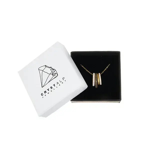Позлатеното колие от медицинска стомана "Noir et Lumière" привлича погледите с модерния си контрастен дизайн.