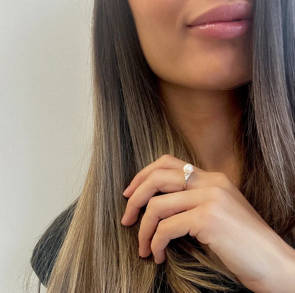 Сребърният пръстен с перла Сваровски въплъщава минимализъм с лек авангарден привкус.