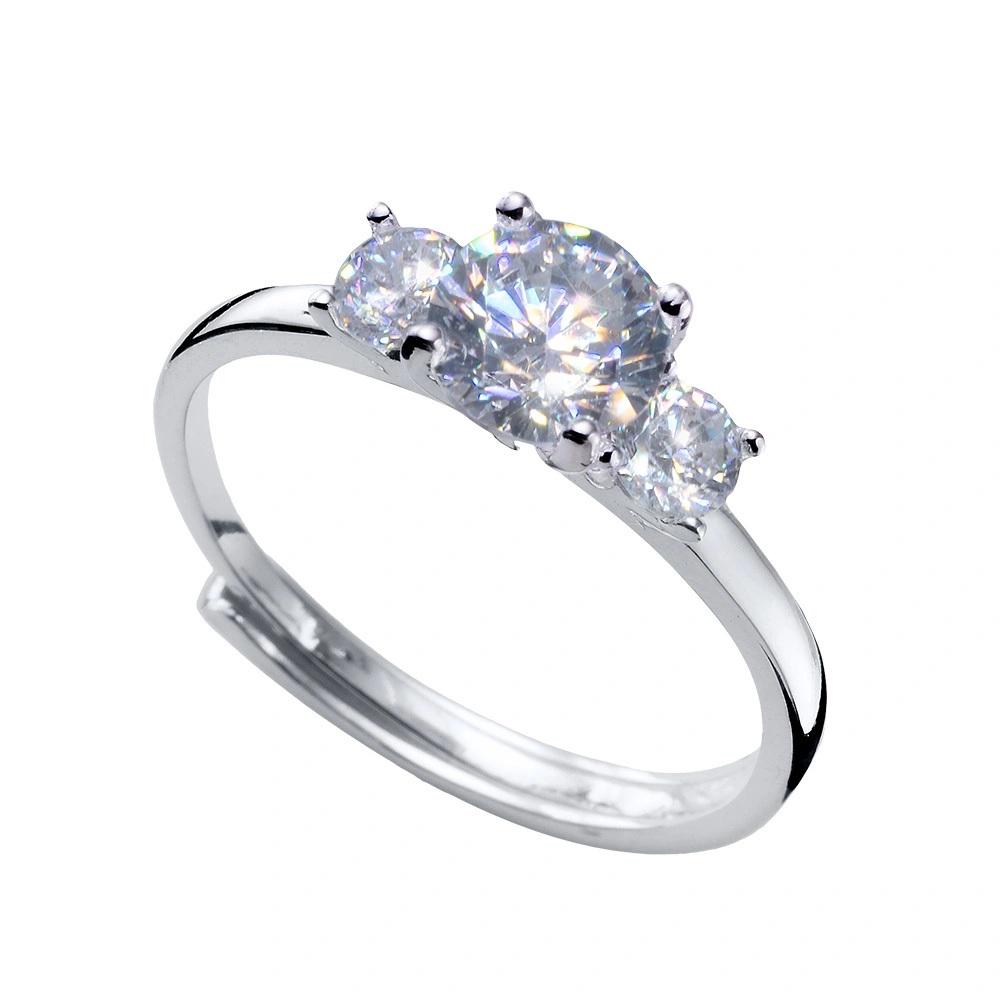 Изработен от висококачествено сребро проба 925, този пръстен има вечен дизайн с три сияйни камъка в различни размери.