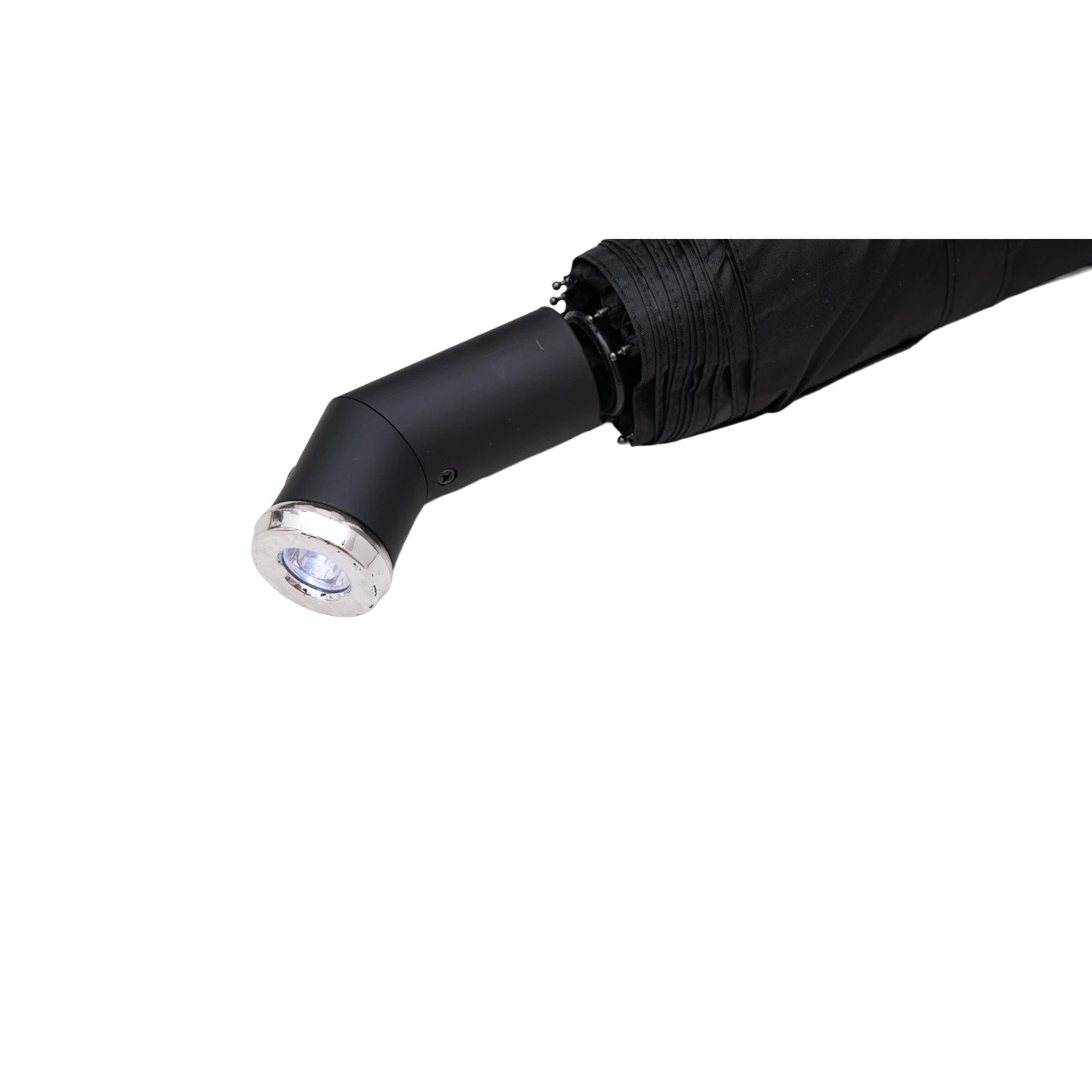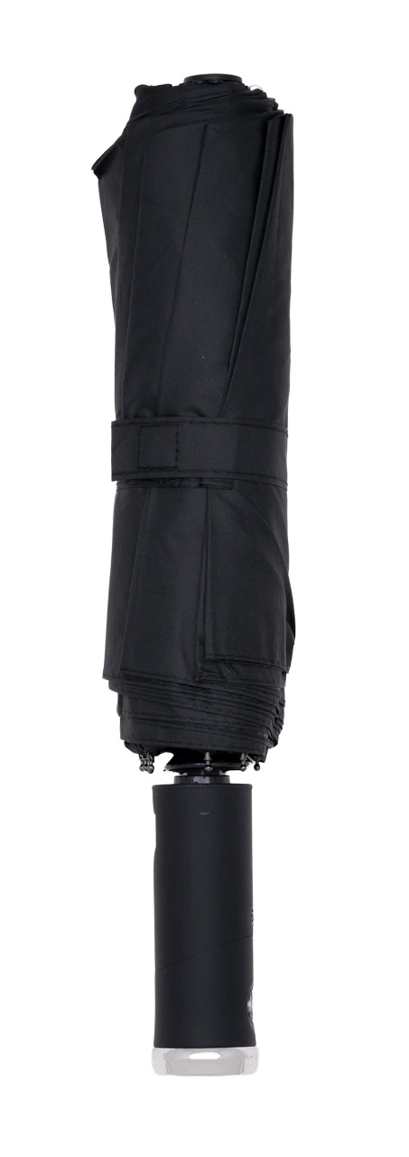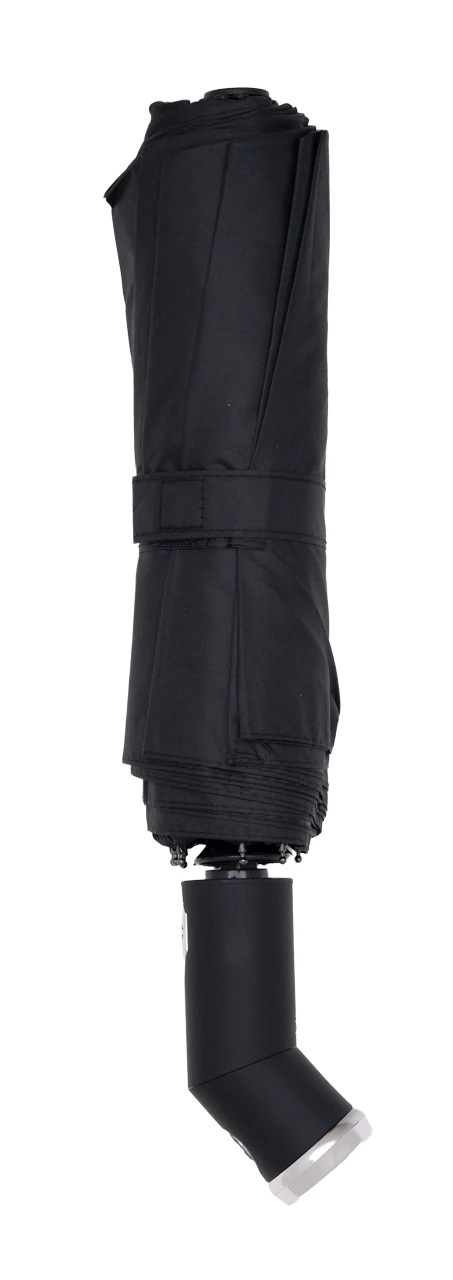 Ветроустойчив сгъваем чадър с автоматично отваряне и затваряне, гумирана дръжка и вградено фенерче.