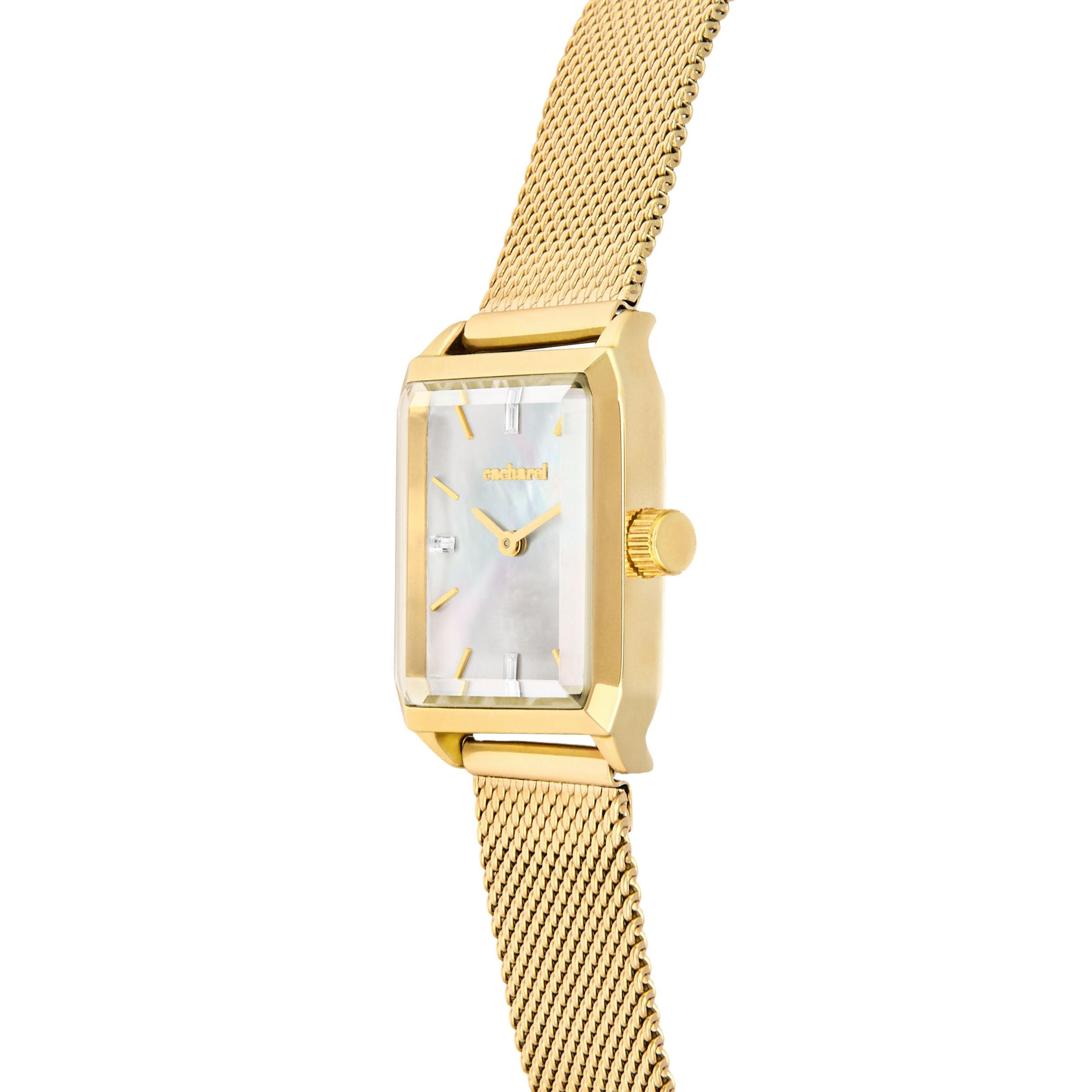 Часовникът Philomène в златисто впечатлява с изискана миланска мрежеста каишка, съчетана с елегантен златист корпус, който оформя изчистен и непреходен силует.