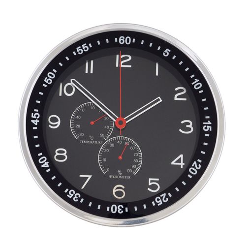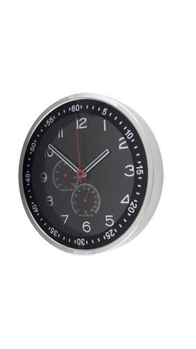 Стилен стенен часовник , изработен от метал с два уреда - влагомер и термометър.Моделът е с плавен и тих механизъм.