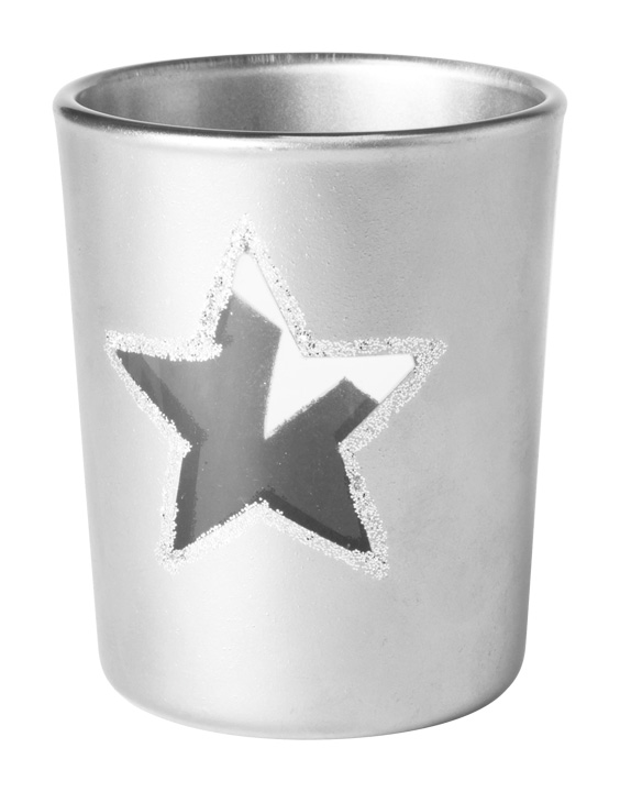 Стъклена свещник с коледен дизайн в комплект с чаена свещ.