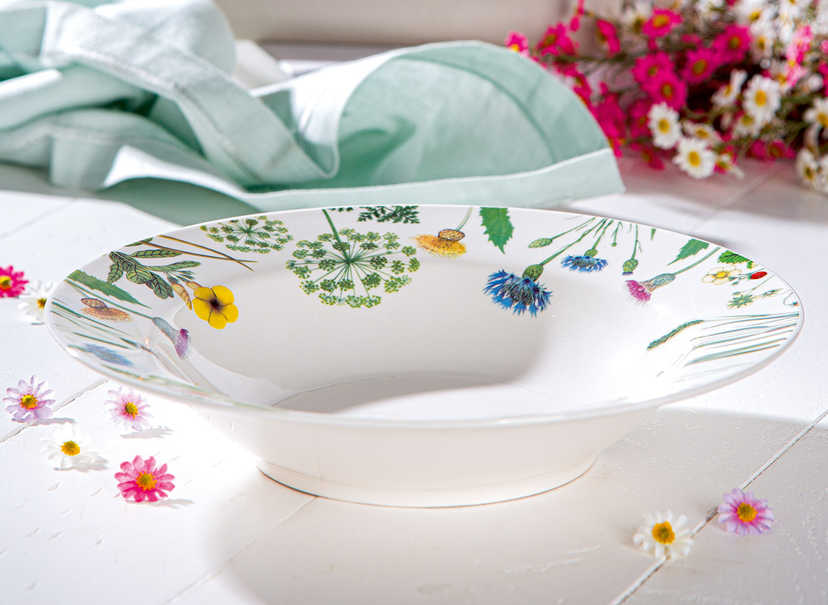 Порцелановата дълбока чиния от серията 'Wild Flowers" може да бъде използвана за поднасяне на супи и други основни ястия.