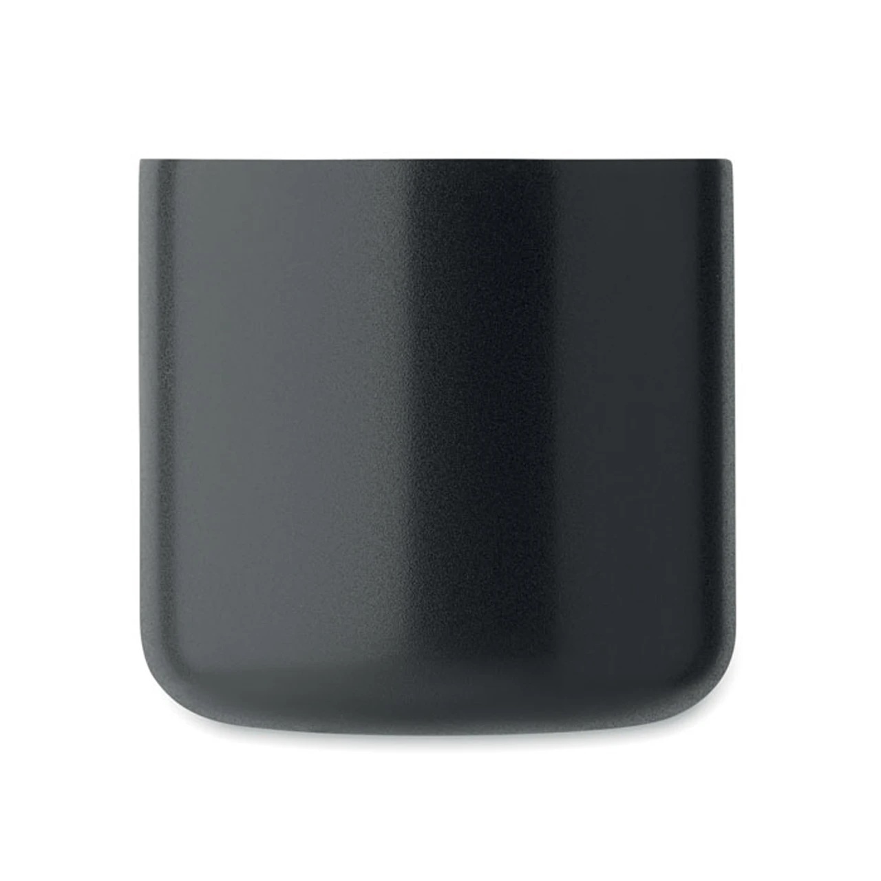 Чаша с двойна стена от рециклирана неръждаема стомана с дървена дръжка за удобно ползване.