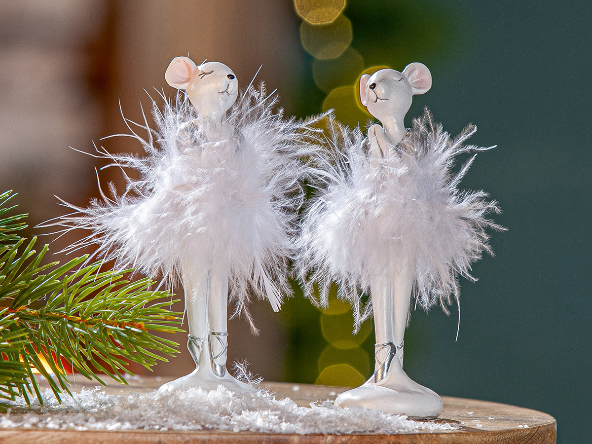Фигурката на мишле балерина с бяла феерична пола, ще донесе топлина и радост през светлите празнични дни.