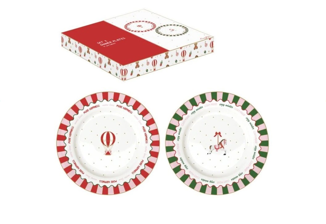 Представяме ви този елегантен подаръчен комплект от две порцеланови чинии за основно ястие в коледен дизайн.