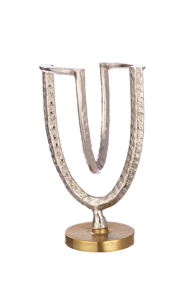 Този елегантен свещник с две преплитащи се метални арки ще озари и придаде колорит на вашия домашен или офис интериор.