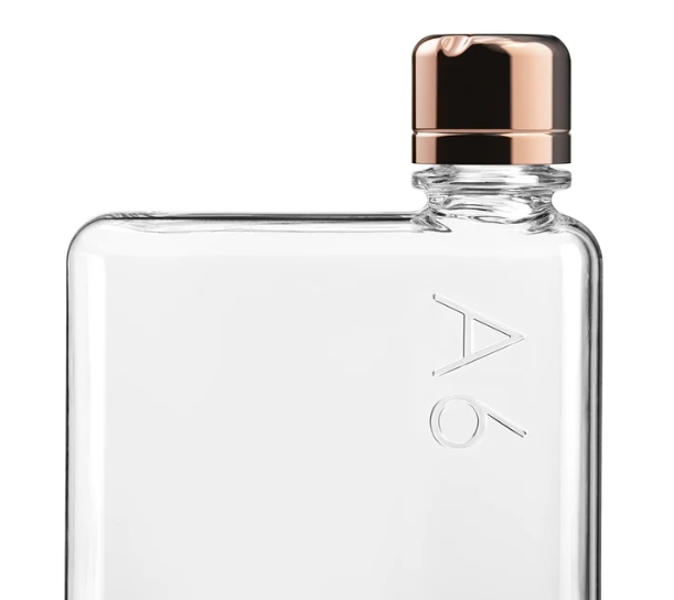Добавете персонална нотка към мемо бутилката си Slim, A6 или А7 със стоманена капачка в цвят Rose Gold.